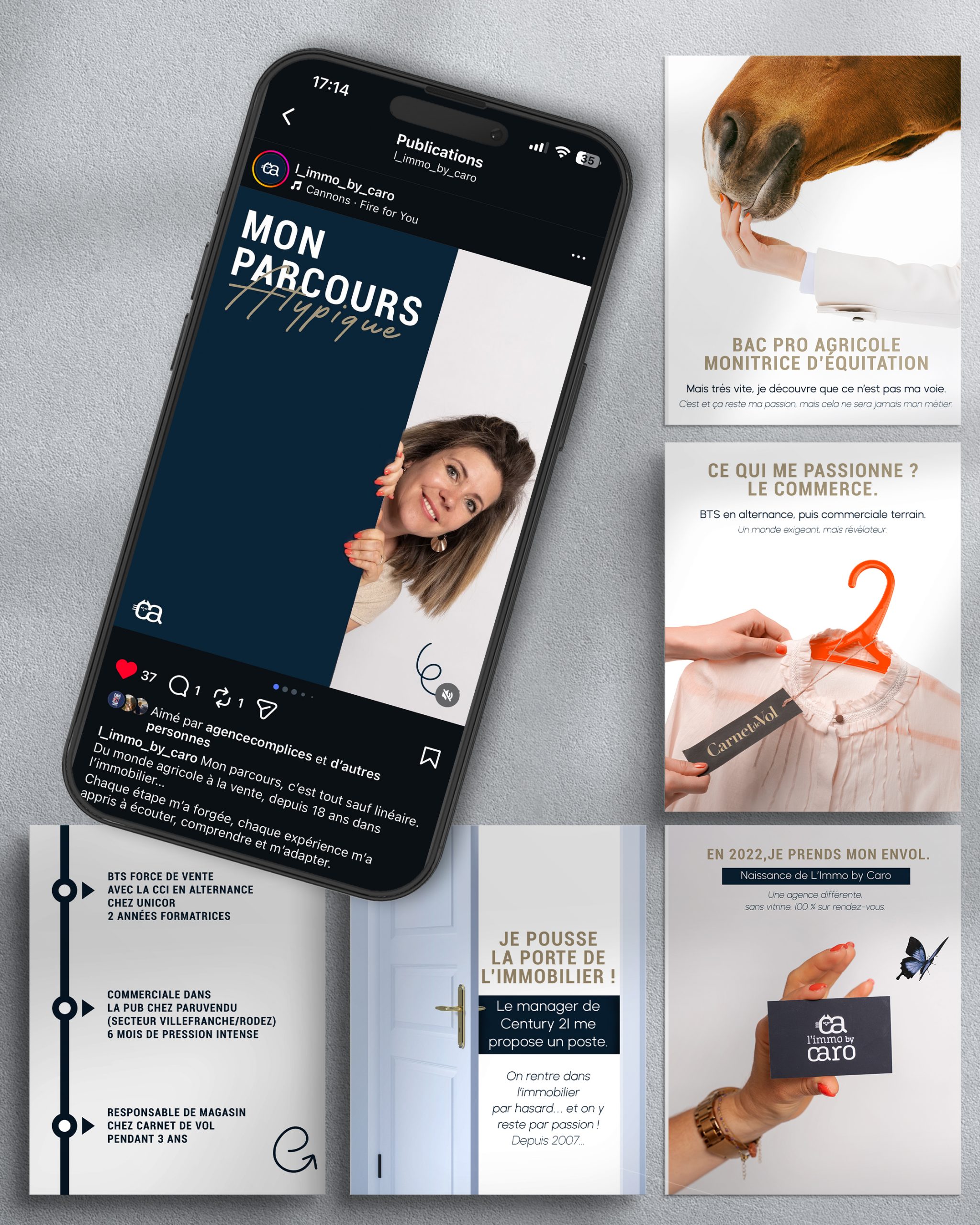 • Imagination de sujets pertinents pour valoriser l’expertise et le quotidien de Caroline.