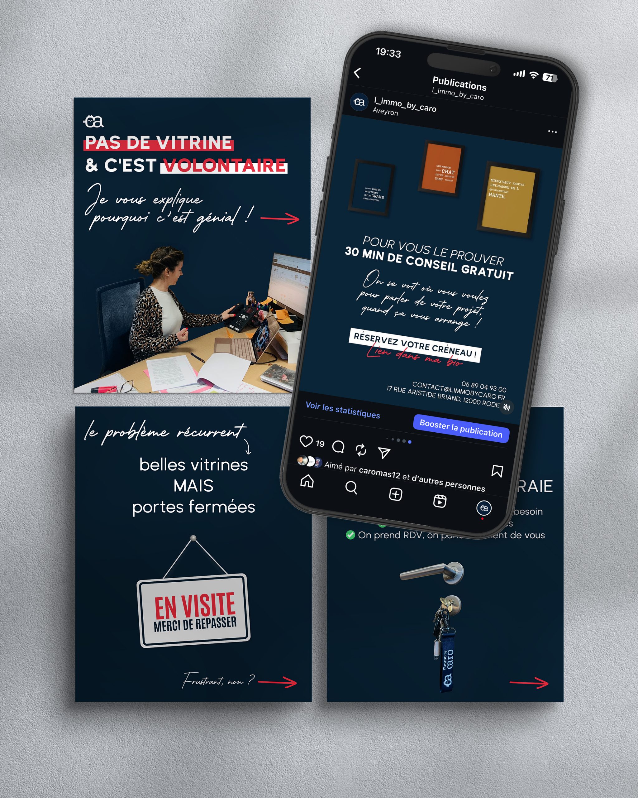 Nous l’accompagnons dans la gestion et l’animation de ses réseaux sociaux depuis avril 2025, en créant des contenus qui reflètent son univers et renforcent sa crédibilité. Notre objectif : mettre en avant son expertise immobilière tout en cultivant une image chaleureuse et professionnelle.